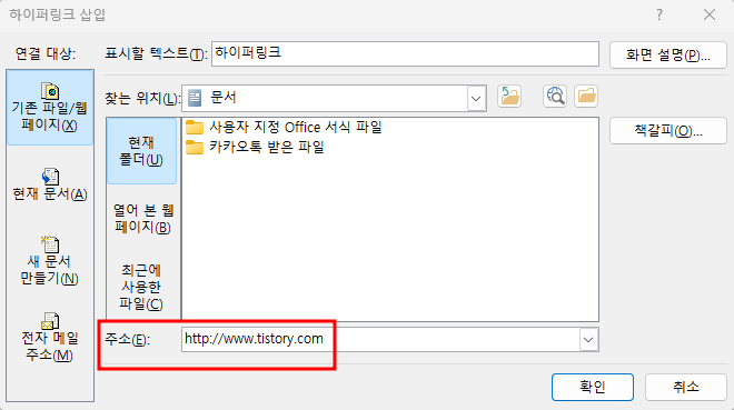 2. 하이퍼링크 고급 설정